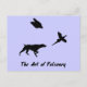 A silhouette of a German Short hair Pointer working together with a falcon.
