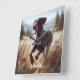 A speckled German shorthair pointer dog runs through a field in this beautiful illustration.