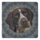 This beautiful, functional stone trivet features a portrait of a lovely German Shorthaired Pointer framed in a classical combination of geometric contours and textures reminiscent of carved marble. Styled for the kitchen or the bar the soft earth tones compliment most home decor. Personal sentiments may be added using the customizing text tool. A distinctive gift for any dog lover or an unique dog show trophy.