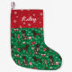 Perfect! Exactly what I ordered! I uploaded a picture of my blue chow, and the screen print was incredible. the back side of the stocking was the red and black checkered print. my puppy's name was also printed on the cuff of the stocking. PERFECT! Highly recommend this product! My puppy's name was screen printed onto the cuff of the stocking, the font was perfect!