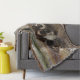 A quality printed throw has its advantages. This is a much finer weave throw than its loopier cousins, and though lighter, it is worth the investment for custom room accessorizing. The back is much prettier than the typical brown, and the fringe on the long sides very vivid, the selvage nicely done. Before photographing, I washed the throw in cold water, delicate, with a thicker woven throw the same size. On tumble dry low, this throw was dry in half the time as the other. This is a very practical quality if you use throws for furniture covers or to wrap up in frequently. The sleekness of the fabric makes it a great layer for accenting or protecting without the feeling of sitting on too much stuff. Perfect for napping or when you feel a light chill coming on. The color printing is beautiful and on this fabric, matched the design and color of my Photoshop image. This is an advantage for blending room fabrics and colors. The fringe on the short sides prints the colors from the design image and therefore varies from the side fringe. I streaked a white fractal line through the plaid pattern to give the illusion of weaving. This printed as crisp as an illusory thread, and put some white in the short side fringe, showing another advantage of print vs loomed- for artistic purposes, line lines, detail, and color integrity can be planned and preserved. My loomed throws have color limitations and more of a needlepoint texture. Print throws reproduce an exact image. The throw felt a little stiff straight out of the package, but this went away in the first delicate wash. Of course I searched the wash water for ink or bleeding and there was none.