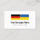 German Ukrainian translation service translator Business Card template. Custom visit cards design with Germany and Ukraine flag company logo. Simple cards with modern typography for name and slogan. Professional cards for translation services, language teacher, education, travel industry, products, visa handling services, translator services, international law, travel agency, transport business, import export, language translating company, trade biz, freelancer etc. Available in different sizes, paper thickness and round corner cut out shape. Also available for other languages. Flag of Germany and Ukraine. Upload your own country flags optionally. Get more creative ideas and free inspiration in our unique shop.