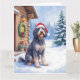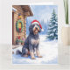 German Wirehaired Pointer Snowy Lodge Santa Hat Card