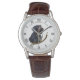 The watch looks really great! Very sharp and well done. The leather band is really nice, though for a man's watch I think it should be longer. Unfortunately, it isn't big enough for my husband's wrist but I will get a replacement because he is very excited to wear it!