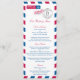 Red and Blue striped Airmail design for your destination wedding menu. If you need any design or layout changes to work better for you please email paula@labellarue.com BEFORE YOU CUSTOMIZE OR PLACE YOUR ORDER so a new template can be created for you.