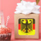 The coat of arms of Germany displays a black eagle (the Bundesadler "Federal Eagle", formerly Reichsadler "Imperial Eagle") on a yellow shield (Or, an eagle displayed sable). It is a re-introduction of the coat of arms of the Weimar Republic (in use 1919–1935) adopted by the Federal Republic of Germany in 1950. The current official design is due to Tobias Schwab (1887–1967) and was introduced in 1928.