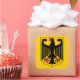 The coat of arms of Germany displays a black eagle (the Bundesadler "Federal Eagle", formerly Reichsadler "Imperial Eagle") on a yellow shield (Or, an eagle displayed sable). It is a re-introduction of the coat of arms of the Weimar Republic (in use 1919–1935) adopted by the Federal Republic of Germany in 1950. The current official design is due to Tobias Schwab (1887–1967) and was introduced in 1928.
