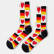 Fun patriotic socks for proud Germans and anybody who loves Germany. Featuring a unique checkered pattern with red hearts on the black squares, and the national flag of Germany in the opposite squares with its equal parts black, red and yellow. These are a great way to show your love for Germany and support for German people, national teams and culture.