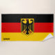 Germany Flag Splendid Patriotic Beach Towel with the Germany flag printed all over the towel. Germany Coat of Arms is placed in the middle of the design. National flag colors are complemented with the text "Germany" on the bottom. Text is fully customizable using "Customize it!" feature. Feel free to change it, remove it or add your own. This charming design is the stunning gift and the great partner for the sunny day on the beach. © 2023 CountriesOfTheWorld
