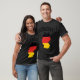 My 11 yo wore adult XL (5’7” 165#). The 8yo is small framed. She wore adult small and tied it in the back. Grandma wore adult large with long sleeve shirt underneath. Tall girl adult medium. Dark haired male adult large. Good quality dark Heather gray, Gildan brand shirt. -it was next up from basic choice and cost about $20 per shirt. Not too thick or thin. Washed and dried well, no major shrinkage. Not see-through. Can wear a bra under it fine. Screen print is just as shown and well done, front and back.