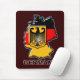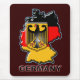 A country of north-central Europe. In this design, the German Coat of Arms, an official emblem is superimposed on the flag filled map of the country.