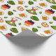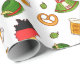 Fun pattern of German icons, like, girls dirndl dress, german beer, pretzels, flag inside the shape of the country of Germany, and more.