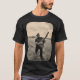 My 11 yo wore adult XL (5’7” 165#). The 8yo is small framed. She wore adult small and tied it in the back. Grandma wore adult large with long sleeve shirt underneath. Tall girl adult medium. Dark haired male adult large. Good quality dark Heather gray, Gildan brand shirt. -it was next up from basic choice and cost about $20 per shirt. Not too thick or thin. Washed and dried well, no major shrinkage. Not see-through. Can wear a bra under it fine. Screen print is just as shown and well done, front and back.