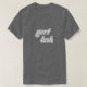 My 11 yo wore adult XL (5’7” 165#). The 8yo is small framed. She wore adult small and tied it in the back. Grandma wore adult large with long sleeve shirt underneath. Tall girl adult medium. Dark haired male adult large. Good quality dark Heather gray, Gildan brand shirt. -it was next up from basic choice and cost about $20 per shirt. Not too thick or thin. Washed and dried well, no major shrinkage. Not see-through. Can wear a bra under it fine. Screen print is just as shown and well done, front and back.