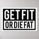 Workout, Fitness and Motivational Quote: Get Fit or Die Fat. Get everyone and yourself motivated with this fitness and bodybuilding motivational slogan. Official Website Fitbys.