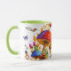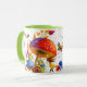 A coming together garden art, rocket ships, happy snails, a yoga frog, magical mushrooms, flying homes, the cloud catching girl along with a few other cuties. These were all taken from past paintings, and made into this Partridge Family tune mug "Get Happy".