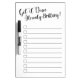 this board was exactly what i was looking for!! i use it for my weekly shopping list. i'm able to erase, edit, check off items. makes shopping much easier and more efficient. the printing came out exactly as i had entered the info