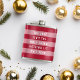 If adult beverages are on your Christmas list, pick up our funny holiday flask in festive red stripes featuring the quote "the tree isn't the only thing getting lit this year" in white cutout lettering.
