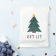 This funny adult Christmas party favor design features "get lit" in festive red and green cutout lettering with a lit Christmas tree illustration topped with a star.