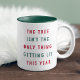 Is that really coffee in your mug? Our funny Christmas mug design features the quote "the tree isn't the only thing getting lit this year" in festive red and green cutout lettering.