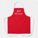 Great color and even though I ordered the kid size, it covers well enough to use during the holidays. I am not a big woman and prefer a shorter apron. I stand 5"6" and the length of the garment goes to mid-thigh. The tie straps fit well at my waist and even though there is no neck strap adjustment, the opening is plenty big enough. I am happy with the size and fit. I am sharing my apron with my 10 year old grandson, too! The color is vibrant and looks good, as shown on the website. The stitching looks strong and reinforced. Photographed is front side and back side of the apron, reinforced straps and coloring. My phone camera may not be the best at showing the details.