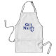 The apron is of very good quality. I used it while icing cookies. The dark colored icing washed off of the apron very well! The neck strap is sturdy and easy to resize on the adult size apron. The print was clear and well defined. I am glad I was able to personalize with name.
