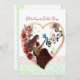 This Pretty Get Our Your Guitar Day white Card features a woman in a burgundy dress playing the guitar on a white background surrounded by flowers, sitting in the heart with birds and a butterfly listening to her music.