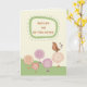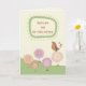 This sweet bird surrounded by whimsical flowers is looking at the get well message for someone who had ear tube suergery. The orage, pink, green and brown soft colors make this card suitable for a child, woman or man.