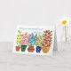 A Hip Surgery Speedy Recovery card with a row of pots of brightly colored flowers, from a handpainted paper collage by Judy Adamson. Please contact me through my store if you would like the front cover text changed and the inside is left blank for your own message.