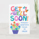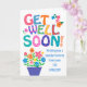 A bright and cheerful Get Well Soon from eye surgery greeting card with colorful, patterned lettering and flowers. There are polka dots, chevrons and stripes in the 'Get Well Soon' lettering and 'Wishing you a speedy recovery from your EYE SURGERY is in blue. Please feel free to personalize the inside message if you wish.