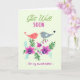 Get Well Soon, card for a sister. Personalize the cover of this Get Well Soon, paper greeting card as you like. Illustration of flowers with two birds on branches. Art, image, and verse copyright © Shoaff Ballanger Studios, 2022.