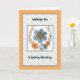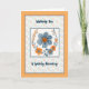 Get well card for a person who is really feeling sick. The design is blue and orange flowers on a light floral background and an orange border. Thanks to the Hungryjpeg for some of the elements in the design.