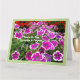 THIS LARGER SIZED GET WELL CARD IS GREAT TO SEND FROM A GROUP. PLENTY OF ROOM INSIDE FOR SEVERAL SIGNATURES AND PERSONAL NOTES. COLORFUL FLOWER GARDEN OF PINK AND WHITE PETUNIAS WITH SMALL RED FLOWERS IN THE BACK. TEXT ON FRONT READS, "YOU'RE IN OUR THOUGHTS AND PRAYERS". INSIDE TEXT IS CUSTOMIZABLE: "THINGS ARE NOT THE SAME AROUND HERE WITHOUT YOU. WE ARE COUNTING THE DAYS UNTIL YOU ARE BACK HERE WITH US. GET WELL SOON!"