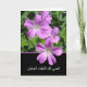 Get Well in Arabic. Translation for cover text "I wish you a speedy recovery". Card features purple cranesbill geranium flowers. Blank inside for your personal message. Nature garden setting photograph taken in Leland, Michigan. Art, image, and verse copyright © Shoaff Ballanger Studios.