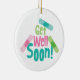 Lightweight, smooth, pure white ornament with nice sheen. Perfect size to be seen from across the room ... and to attract closer inspection! Price was great for ordering enough for the whole family! Clear, bold black design just as requested. Matches the order exactly. Just so nice!