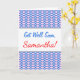 This get-well greeting card design features a pattern that involves blue and pink diamond shapes. The front also features the encouraging and supportive message "Get Well Soon", along with the personalized name of the card’s recipient. The inside features a customized get-well-soon message meant to help comfort the recipient of the card. [~Z0000063]