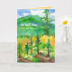 A get well soon from your surgery greeting card for an outdoor enthusiast who likes to get out and explore decorated with a green mountain scene with white wildflowers growing around logs and new trees among the yellow brush and soft clouds in the sky hand painted with watercolor.