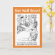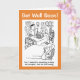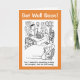 Husband takes the ironing in to hospital. Get well soon funny cartoon card. Create your own inside message. Orange background.