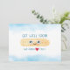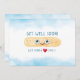 This cute design is a great way to remind your loved one you care when they are under the weather. Featuring watercolor bandage with eyes and smile, the featured message is "GET WELL SOON! (We kinda HEART you.)" Heart illustration implies word, "love" in message and background is soft blue watercolor. Inside can be customized with your own message.