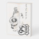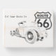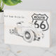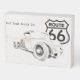 Wooden box sign depicting hot rod route 66 image design printed on it. Great gift for any car enthusiasts in your life, hang it on wall, create a collage with different ones, put on office desk.