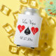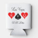 Getting married Las Vegas custom wedding party Can Cooler. Classy white beverage holder with couple's logo. Hearts and spade design with initials of bride and groom plus date of marriage. Personalize with destination name. Best for gambling / casino theme parties. Fun party favor for guests. Lucky in love in the marriage capital of the world.