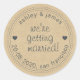 Chic and simple save the date label, with your names and wedding date in off-black modern typography on a kraft paper background, and the text 'we're getting married' in stylish script font. Use these wedding stickers for your wedding gifts, gift bags or as a save the date envelope seal. Exclusively designed for you by Happy Dolphin Studio. If you need any help or matching products, please contact us at happydolphinstudio@outlook.com.