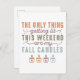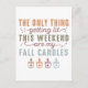This humorous and cozy fall design features the witty phrase "The Only Thing Getting Lit This Weekend Are My Fall Candles" in a mix of bold and elegant fonts. The text is creatively arranged with varying font sizes and styles, adding visual interest and a playful tone. The color palette includes warm autumn hues like burnt orange, earthy greens, and soft browns, which evoke the warmth and comfort of the season.