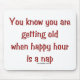 You know you are getting old when happy hour is a nap! - Funny and humorous quotes and sayings with an attitude. Up the hill? Napping more than usual? This quotation says it all!
