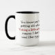 I was thrilled this came out so well. It is a very attractive mug with the colored handle and interior. Being able to personalize it was easy! It was designed for an end of the year thank you gift to the special recipient. perfect. Text lines up perfectly parallel to the top edge of the mug.