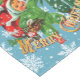 Christmas table runner with happy, cheerful children getting the Christmas tree back to home after cutting it in the forest - perfect for holiday entertaining.