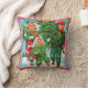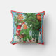 Christmas throw pillow with happy, cheerful children getting the Christmas tree back to home after cutting it in the forest.