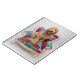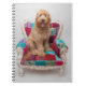 A happy Goldendoodle sitting contently on a colorful, patterned chair. This cute shaggy puppy seems to be larger than the chair but never too big to hold in your arms. With his tongue sticking out, facing the camera in this photo, he would make the perfect companion. Discover lots more cute puppies here on Zazzle with Getty Images.