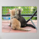 Pictured here are two adorable kittens sitting together on a balcony overlooking a scene of green. The two kitten display a sense of being free while sitting on what could be a cat window box. The human parents of these two darlings need not be worried as the cage in the image indicates a cat proof balcony. This cute display of affection would melt even the coldest of hearts. Discover even more displays of cute animal affection with Getty Images here on Zazzle.