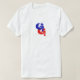 The shirt is good quality and fits just fine, but the colors of the printing are not as bright as in the sample photo. Not the best. The colors are a lot brighter in the sample photo; when I received the shirt they appeared faded. The red looks a little more pink and the blue is a lot lighter. N.B. I did not wash the shirt yet.